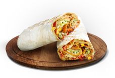 Тончайшая основа из лаваша, начиненного сыром и свежими овощами, с нежным соусом на йогуртной основе. Идеальный вариант для любителей вегетарианской и легкой пищи.