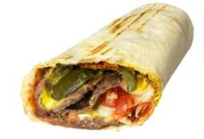 Говядина-гриль со свежими овощами и соусом по фирменному рецепту, завернутая в тонкий бездрожжевой лаваш.