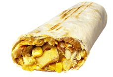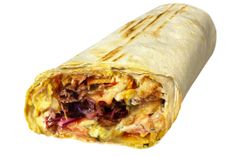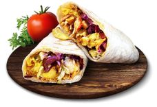 Пышный омлет из яиц с зеленью в сочетании с ароматным куриным мясом на гриле, перцем, кукурузой, кусочками томата, заправленный фирменным соусом и завернутый в тонкий лаваш.