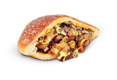 Румяная булочка с кунжутной посыпкой, начиненная мясом курицы с вертела, ананасами, свежим салатом, ломтиком помидора, заправленная специальным соусом на йогуртной основе.