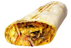 Ароматное куриное и говяжье мясо-гриль со свежими овощами и соусом по фирменному рецепту, завернутое в тонкий бездрожжевой лаваш.